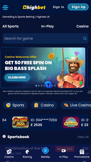 पंजीकरण प्रक्रिया तेज़ है और इसमें केवल दो मानक साइन-अप चरण हैं। इन्हें पूरा करने पर खिलाड़ी अपने डैशबोर्ड पर पहुँच जाता है और हाईबेट के ऑफ़र को एक्सप्लोर करने का अवसर मिलता है।