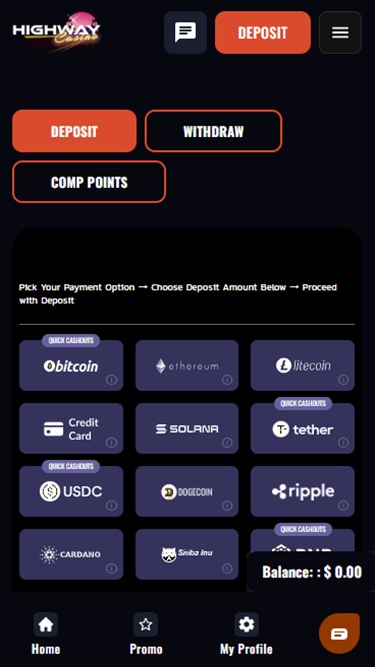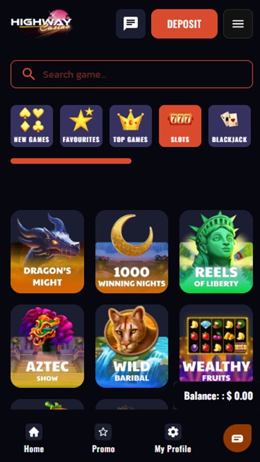 हाईवे कैसीनो Real Time Gaming, BetSoft, Rival, Saucify, Visionary iGaming, Betgames, Nucleus Gaming, Spadegaming, BGAMING, Genii, Wager Gaming, Dragon Gaming, FastSpin, Dragoon Soft and Urgent Games द्वारा संचालित है और साइट के सभी गेम आपके इंटरनेट ब्राउज़र के माध्यम से उपलब्ध हैं। साइट आकर्षक और नेविगेट करने में आसान है, और इसमें एक सर्च बार भी है जो खास गेम खोजने के लिए उपयोगी है। हाईवे मोबाइल प्ले को भी पूरी तरह सपोर्ट करता है, इसलिए आप चाहें तो अपने फ़ोन या टैबलेट पर भी खेल सकते हैं।अन्य खेल