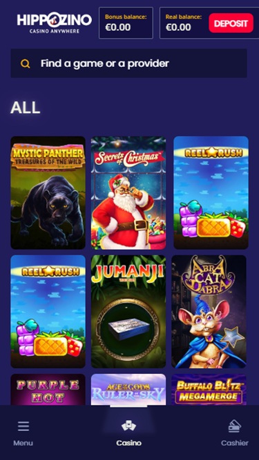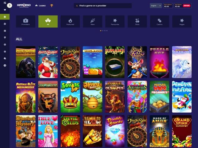 हिप्पोज़िनो कैसीनो Microgaming, Net Entertainment, Playtech, 1x2gaming, Barcrest, Big Time Gaming, ELK Studios, Evolution Gaming, EYECON, lightningboxgames, Play'n GO, Rabcat, Thunderkick, Pragmatic Play, Nolimit City, Red Tiger Gaming, Spinomenal, SYNOT Games, Skywind, Triple Edge Studios, Northern Lights Gaming, Stormcraft Studios, Switch Studios, All41 Studios, Gameburger Studios, Pulse 8 Studios, Slot Factory, Neon Valley Studios, Shuffle Master, SpinPlay Games, Real Dealer Studios, GONG Gaming, On Air Entertainment, Buck Stakes Entertainment, Caleta Gaming, Games Global, Blueprint Gaming, Greentube, Tom Horn Gaming, WMS, Inspired Gaming, SG Interactive, Red7Mobile, CORE Gaming, Scientific Games, Reel Time Gaming, Iron Dog Studio, Old Skool Studios, Foxium, Betdigital, Just For The Win, PearFiction Studios, Wild Streak Gaming, Slingshot Studios, Fortune Factory Studios, Gamevy, Crazy Tooth Studio, Alchemy Gaming, Black Pudding Games, Snowborn Games, Hacksaw Gaming, Gold Coin Studios, Half Pixel Studios, Aurum Signature Studios, Lucksome Gaming, Area Vegas, Wishbone Games, Circular Arrow, HammerTime Games, INO Games, Nailed It! Games, Neko Games, Reel Kingdom and Oros Gaming द्वारा संचालित है, और कैसीनो के खेल एक वेब-आधारित प्लेटफ़ॉर्म के माध्यम से उपलब्ध हैं। जो लोग अपने स्मार्टफ़ोन या टैबलेट पर खेलना चाहते हैं, उनके लिए एक मोबाइल साइट भी उपलब्ध है।