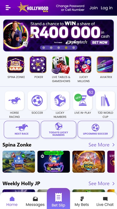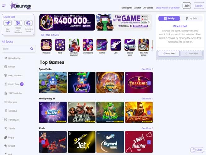 हॉलीवुडबेट्स कैसीनो एक अग्रणी और अग्रणी जुआ ब्रांड है जो विशेष रूप से दक्षिण अफ़्रीकी खिलाड़ियों को आकर्षित करने पर केंद्रित है। 1990 के दशक के अंत में अपनी शुरुआत के बाद से, इस जुआ साइट और स्पोर्ट्सबुक ने खेल सट्टेबाजी विकल्पों और कई कैसीनो गेम्स का एक बड़ा संग्रह हासिल कर लिया है, जिनमें स्पाइना ज़ोंके ऑनलाइन स्लॉट, लाइव डीलर, टेबल गेम्स और क्रैश गेम्स शामिल हैं। कैसीनो विभिन्न प्रमोशन, स्पोर्ट्स बोनस, इवेंट और टूर्नामेंट भी प्रदान करता है जिनमें खिलाड़ी भाग ले सकते हैं।