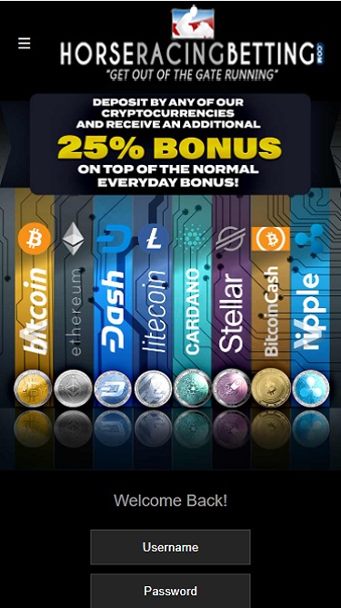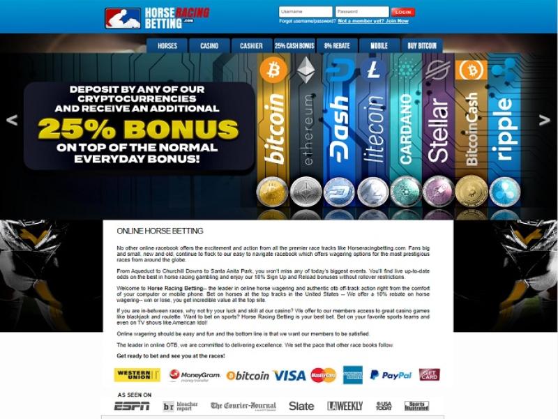 हॉर्स रेसिंग बेटिंग एक स्पोर्ट्स बेटिंग ऑपरेटर है जो घोड़ों पर सट्टेबाजी के अवसरों पर केंद्रित है और एक ऑनलाइन कैसीनो है जो अमेरिकी कैसीनो खिलाड़ियों का स्वागत करता है। इस समीक्षा को लिखते समय, इस साइट के पास कोई लाइसेंस नहीं था।