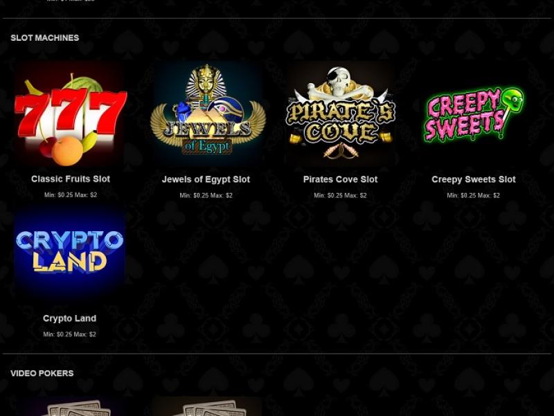 उपलब्ध खेल हैं: ब्लैकजैक, 777, जैक्स या बेटर वीपी, अमेरिकन रूलेट, क्रेप्स वेगास कैसीनो, ज्वेल्स ऑफ इजिप्ट, बैकारेट, बीट द बुकी, ड्यूसेस वाइल्ड, पाइरेट्स कोव और क्रीपी स्वीट्स।