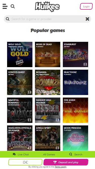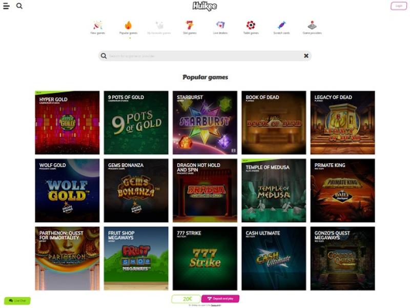 जैसा कि परिचयात्मक भाग में बताया गया है, हुइकी कैसीनो ने कंटेंट आपूर्तिकर्ताओं के एक विशाल नेटवर्क के साथ साझेदारी की है। वाइल्ड स्ट्रीक गेमिंग, ब्लाब्लाब्ला स्टूडियोज़, स्प्रिब, क्विकस्पिन, प्रैगमैटिक प्ले, प्लेसन कुछ ऐसे नाम हैं जिनके रोमांच ऑपरेटर की लॉबी में समाहित हैं।