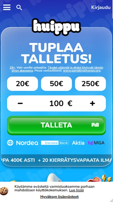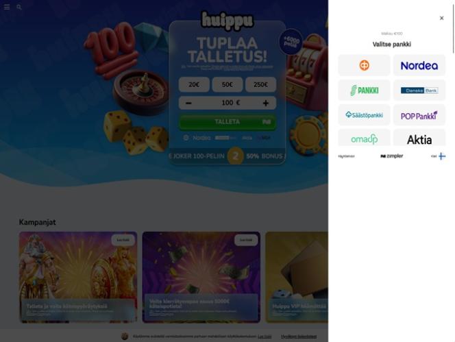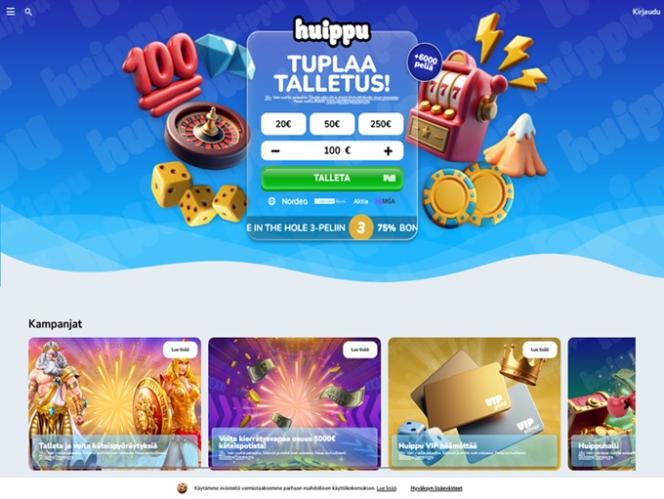 2025 में लॉन्च किया गया, हुइपुकासिनो एक बेहतरीन ऑनलाइन कैसीनो है जो विशेष रूप से फ़िनलैंड के खिलाड़ियों को स्वीकार करता है और ढेर सारे रोमांचक कैसीनो गेम्स प्रदान करता है। यह ब्रांड असली पैसे वाले स्लॉट्स, लाइव डीलर्स, टेबल गेम्स और इंस्टेंट क्रैश गेम्स का एक विशाल संग्रह प्रदान करता है, साथ ही आपको घंटों व्यस्त रखने के लिए कई प्रमोशन और बोनस भी प्रदान करता है।