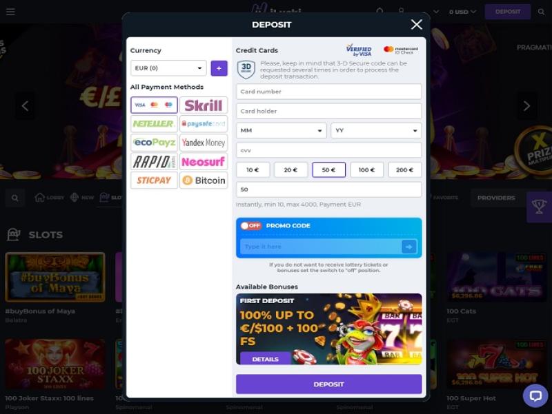 यहाँ की बैंकिंग व्यवस्था बेहतरीन है। ई-वॉलेट और क्रिप्टोकरेंसी से भुगतान तुरंत हो जाता है, जबकि अन्य तरीकों में उनकी अंतर्निहित गति सीमा के कारण अधिक समय लगता है। निकासी की साप्ताहिक सीमा $7,500 और मासिक सीमा $15,000 है, इसलिए इसे ध्यान में रखें।
