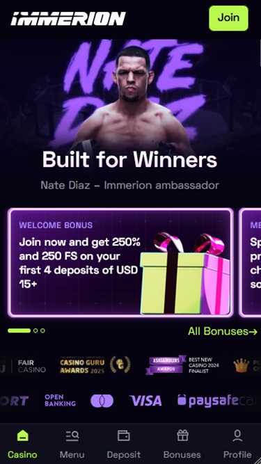 इमेरियन में एक उल्लेखनीय स्वागत प्रस्ताव भी शामिल है, इसलिए यदि आपने अभी-अभी एक नया कैसीनो खाता पंजीकृत किया है, तो आपको एक स्वागत पैक के साथ स्वागत किया जाएगा जिसका उपयोग कैसीनो में आपके पहले चार जमाओं के साथ किया जा सकता है।