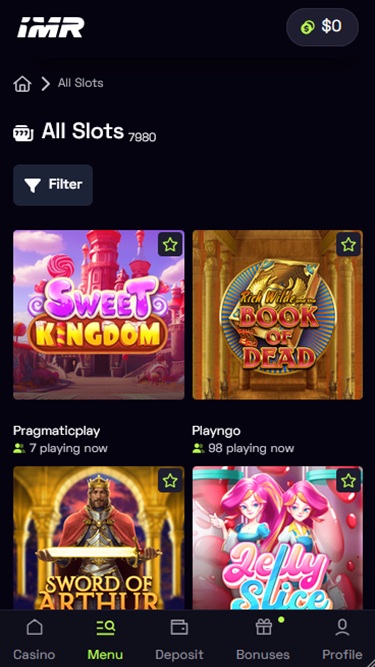 शानदार लेआउट के अलावा, यह वेबसाइट बेहतरीन कार्यक्षमताएँ भी प्रदान करती है। जैसा कि अपेक्षित था, इमेरियन कैसीनो मोबाइल पर जुआ खेलने और चलते-फिरते गेम खेलने के लिए अनुकूलित है। अगर आप अपने पर्सनल कंप्यूटर गेमिंग स्टेशन और बड़ी स्क्रीन का इस्तेमाल करते हैं, तो आपका गेमिंग अनुभव स्मार्टफोन या टैबलेट जितना ही शानदार होगा। आपके ठहरने का सबसे अच्छा लोडिंग समय और गुणवत्ता काफी हद तक आपके इंटरनेट कनेक्शन की स्थिरता पर निर्भर करती है, इसलिए सुनिश्चित करें कि उस विभाग में सब कुछ ठीक है, और आइए कैसीनो की लॉबी में साथ चलें।