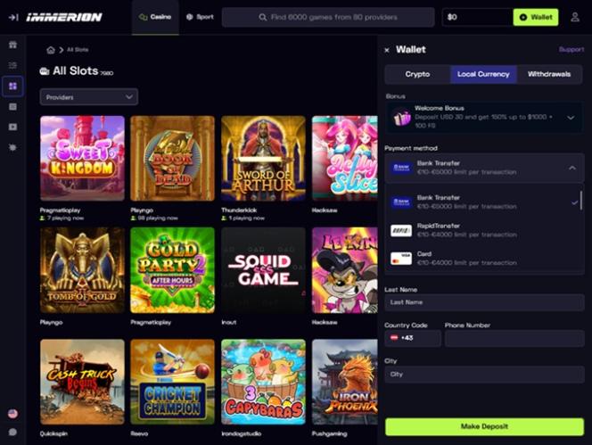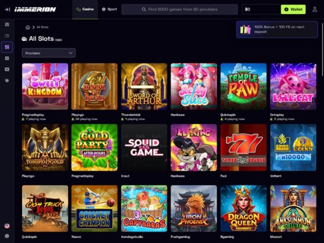 इमेरियन कैसीनो आधुनिक जुआरियों की अपेक्षाओं के अनुसार अपनी गेमिंग लाइब्रेरी का चयन करता है। इस कैसीनो में, खिलाड़ी अग्रणी सॉफ्टवेयर स्टूडियो और प्रतिष्ठित iGaming कंपनियों, जैसे BetSoft, NetEnt, Quickspin , और कई अन्य स्थापित ऑनलाइन जुआ ब्रांडों द्वारा डिज़ाइन किए गए गेम खेलने का आनंद ले सकते हैं। नए, नवोन्मेषी डेवलपर्स भी भागीदार कंपनियों की सूची में शामिल हैं, जो गेम की विविधता की गारंटी देता है।