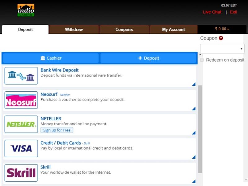 Indio Casino एक India थीम वाली ऑनलाइन सट्टेबाजी साइट है जिसकी स्थापना 2003 में रैंड लॉजिक गेमिंग एनवी द्वारा की गई थी। यह कैसीनो अफ्रीकन पैलेस और Grand Reef Casino की सहयोगी साइट है, दोनों का एक भौगोलिक क्षेत्र है जहाँ वे अपनी थीम आधारित करते हैं। अपनी शुरुआत के बाद से, Indio Casino ने मिश्रित प्रतिष्ठा अर्जित की है: कुछ खिलाड़ी कैसीनो के गेमिंग चयन और सेवा के लिए इसे पसंद करते हैं, जबकि अन्य धीमे भुगतान और $10,000 की कम मासिक निकासी सीमा से नाराज़ हैं।कैसीनो जानकारी