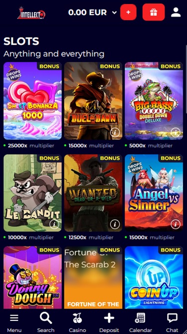 इस मामले में, ऑपरेटर ने भी निराश नहीं किया। कैसीनो में दिलचस्प और विविध शीर्षकों का एक समृद्ध संग्रह उपलब्ध है। इंटेलेक्टबेट ने यह सुनिश्चित किया है कि खिलाड़ी यहाँ आसानी से मनोरंजन कर सकें, और बोर होने की संभावना न के बराबर हो। लेकिन यह सिर्फ़ विज़ुअल्स और आकर्षक डिज़ाइन की बात नहीं है। आसान नेविगेशन, तेज़ और सरल पंजीकरण, रोमांचक प्रमोशनल ऑफ़र और भी बहुत कुछ।
