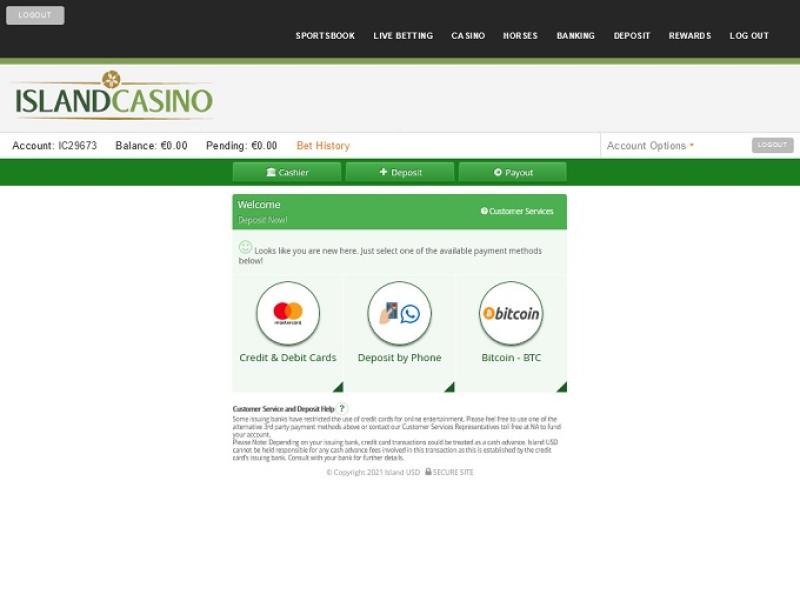 Island Casino एक ऑनलाइन सट्टेबाजी साइट है जो 1997 से चल रही है। Costa Rica में स्थित, Island Casino इस क्षेत्र की बेहतर साइटों में से एक है, और इसे विश्वसनीय 5Dimes समूह (जो अपनी स्पोर्ट्सबुक के लिए जाना जाता है) द्वारा संचालित किया जाता है।कैसीनो जानकारी