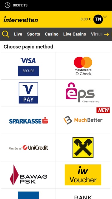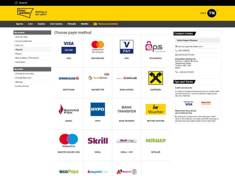 Interwetten / iwcasino पर बैंकिंग विकल्प