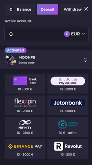 यह ऑनलाइन गेमिंग ब्रांड कनाडा, रूस और यूक्रेन के सट्टेबाजों के लिए बनाया गया है। यह नवीनतम तकनीक के अनुसार निर्मित एक आकर्षक, भविष्योन्मुखी कैसीनो प्लेटफ़ॉर्म का उपयोग करता है जो सौंदर्य की दृष्टि से बेहद मनभावन है।