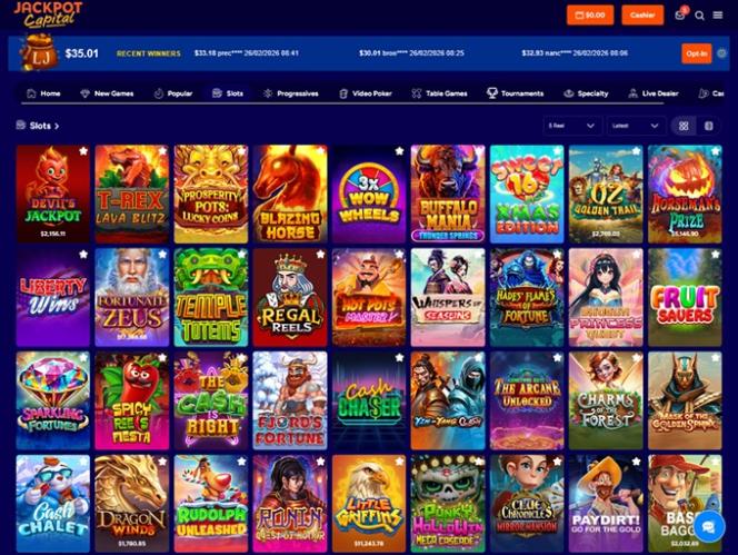Slots Jackpot Capital की गेमिंग पेशकश का एक अभिन्न अंग हैं, और इनमें क्लासिक 3-रील स्लॉट्स से लेकर 3D ग्राफ़िक्स वाले वेब-आधारित 5-रील स्लॉट्स तक, सब कुछ शामिल है। बड़े जैकपॉट जीतने के इच्छुक खिलाड़ी पाएंगे कि कैसीनो कई प्रगतिशील स्लॉट्स प्रदान करता है जिनके पुरस्कार लाखों डॉलर तक पहुँचते हैं।