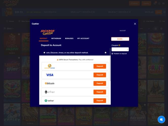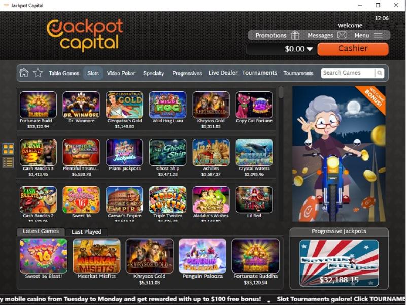Jackpot Capital कैसीनो Real Time Gaming and Visionary iGaming द्वारा संचालित है, जो अपने ग्राहकों को दर्जनों अमेरिकी-अनुकूल गेम प्रदान करता है। यह कैसीनो एक वेब-आधारित प्लेटफ़ॉर्म के साथ-साथ एक डाउनलोड करने योग्य सॉफ़्टवेयर के माध्यम से भी उपलब्ध है, जो आपको कैसीनो के सभी गेम अपने कंप्यूटर पर डालने की सुविधा देता है।