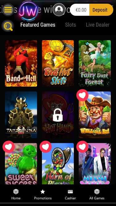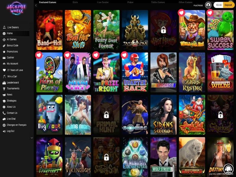 जैकपॉट व्हील पर वीडियो और क्लासिक स्लॉट्स की अच्छी-खासी संख्या उपलब्ध है, और यह साइट सॉसिफाई के अनोखे गेम्स का लाभ उठाती है। ये गेम्स मोबाइल डिवाइस पर भी खेले जा सकते हैं, हालाँकि सभी गेम्स इस प्लेटफॉर्म पर उपलब्ध नहीं हैं।