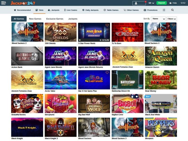 जैकपॉट247 कैसीनो Microgaming, Net Entertainment, 1x2gaming, Barcrest, Big Time Gaming, ELK Studios, Evolution Gaming, EYECON, iSoftBet, lightningboxgames, Novomatic, Play'n GO, playson, Relax Gaming, Thunderkick, Yggdrasil, Realistic Games, Betgames, Stakelogic, Pragmatic Play, Nolimit City, Red Tiger Gaming, Fantasma Games, SYNOT Games, Kalamba, Triple Edge Studios, Northern Lights Gaming, Stormcraft Studios, SA Gaming, Electric Elephant Games, Pocket Games Soft, All41 Studios, Gameburger Studios, Neon Valley Studios, Spearhead Studios, TrueLab Games, Shuffle Master, GONG Gaming, Games Global, Wizard Games, 2by2 Gaming, Bally Technologies, Blueprint Gaming, Greentube, Leander Games, NextGen, Pariplay, Push Gaming, WMS, Inspired Gaming, Iron Dog Studio, Foxium, Just For The Win, Slingshot Studios, Jade Rabbit Gaming, Green Jade Games, STHLM Gaming, 4ThePlayer, AvatarUX, Gamevy, Crazy Tooth Studio, High 5 Games, ReelPlay, Alchemy Gaming, Plank Gaming, BB Games, Snowborn Games, Boomerang Studios, Hacksaw Gaming, Gold Coin Studios, Slotmill and SilverBack Gaming द्वारा संचालित है, और इसके गेम एक वेब-आधारित प्लेटफ़ॉर्म के माध्यम से उपलब्ध कराए जाते हैं जो खिलाड़ियों को अपने इंटरनेट ब्राउज़र के माध्यम से गेम खेलने का मौका देता है। एक मोबाइल साइट भी उपलब्ध है, जो खिलाड़ियों को अपने स्मार्टफोन या टैबलेट के माध्यम से खेलने का मौका देती है।