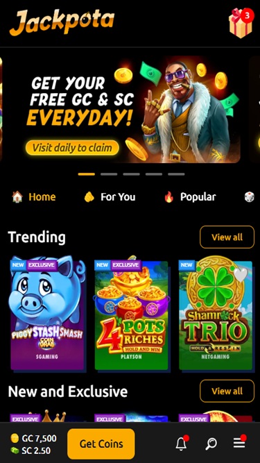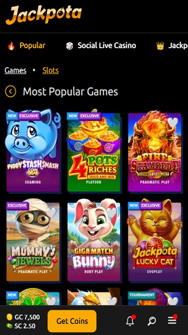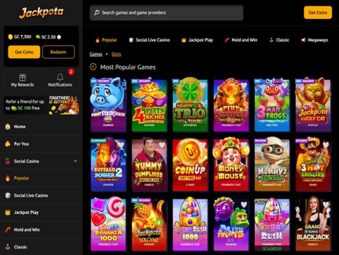 जैकपोटा में खेलते समय, खिलाड़ी दो अलग-अलग मुद्राओं का उपयोग करके सभी खेलों का अनुभव कर सकते हैं: गोल्ड कॉइन और स्वीपस्टेक्स कॉइन, दोनों ही मुफ़्त में कमाए जा सकते हैं। गोल्ड कॉइन को मनोरंजन के लिए खेली जाने वाली मुद्रा माना जाता है और इन्हें कभी भी असली इनामों के लिए भुनाया नहीं जा सकता।