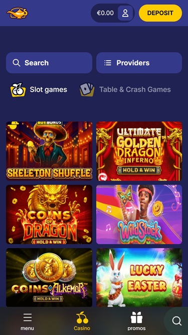 साइट के हेडर पर मौजूद कैसीनो बटन पर क्लिक करने से आपके सामने गेमिंग का पूरा पोर्टफोलियो खुल जाएगा, जो स्लॉट, टेबल गेम, वर्चुअल गेम, क्रैश आदि जैसे कई उप-खंडों में विभाजित है। बेहतर अनुभव के लिए, आपकी स्क्रीन के दाईं ओर कई समायोज्य फ़िल्टर और एक सर्च बार भी मौजूद हैं।