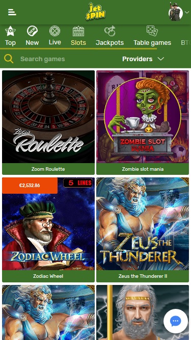 जेटस्पिन पर लगभग 1,500 वीडियो स्लॉट उपलब्ध हैं, और कैसीनो माइक्रोगेमिंग, नेटएंट, बेटसॉफ्ट और अन्य कंपनियों के गेम्स का चयन भी प्रदान करता है। स्लॉट की कई अलग-अलग शैलियाँ उपलब्ध हैं, और आपको इनमें से कुछ गेम्स से जुड़े प्रोग्रेसिव जैकपॉट भी मिलेंगे। मोबाइल स्लॉट भी उपलब्ध हैं, जिनकी मदद से आप अपने स्मार्टफोन या टैबलेट पर वर्चुअल रील्स स्पिन कर सकते हैं।