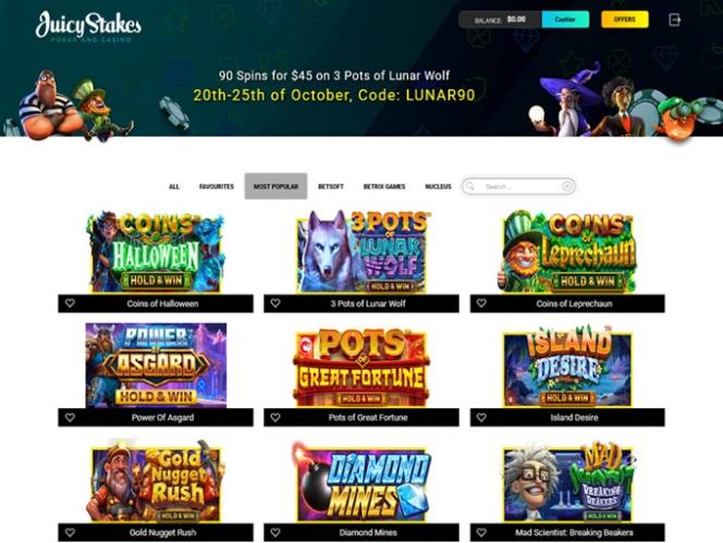 Juicy Stakes Casino का भी घर है 30 नीचे सूचीबद्ध अन्य खेल: