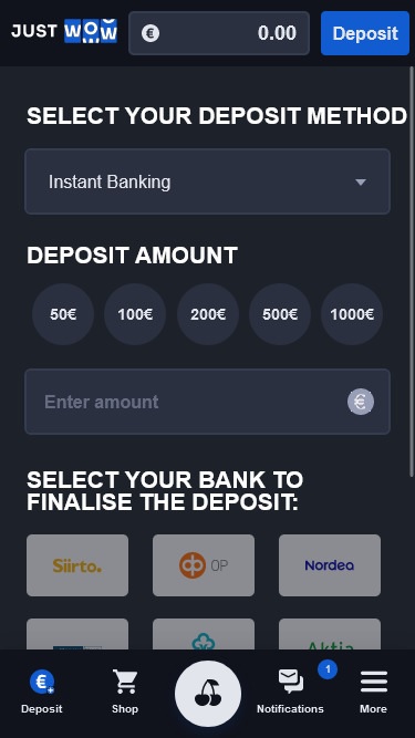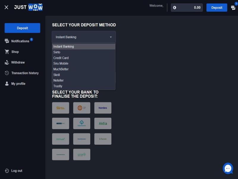 JustWOW Casino स्क्रीनशॉट