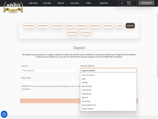 काजोट कैसीनो एक ऑनलाइन सट्टेबाजी साइट है जो 2012 से परिचालन में है, और इसका स्वामित्व और संचालन काजोट कैसीनो लिमिटेड द्वारा किया जाता है। कैसीनो में आपके द्वारा उपयोग किए जाने वाले खेलों की एक अलग सूची है, और तेजी से भुगतान के साथ उत्कृष्ट प्रबंधन काजोट कैसीनो को निश्चित रूप से जांचने लायक स्थान बनाता है।कैसीनो जानकारी
