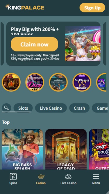 ऑनलाइन कैसीनो में स्लॉट्स सबसे बड़े आकर्षणों में से एक हैं , इसलिए किंगपैलेस में एक अलग मेनू है जो आपको विभिन्न शैलियों के बीच तेज़ी से आगे बढ़ने में मदद करेगा - चाहे वह मेगावेज़ हों, बोनस खरीद सुविधा वाले स्लॉट हों, होल्ड एंड विन स्लॉट हों, और निश्चित रूप से, जैकपॉट वाले स्लॉट हों। सर्च बार की बदौलत, आप अपने पसंदीदा गेम और प्रदाताओं को भी खोज पाएँगे।