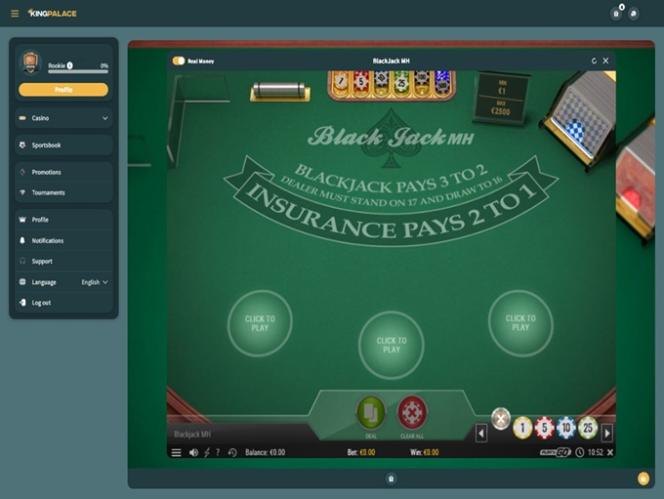 किंगपैलेस कैसीनो एक स्तरीय वीआईपी लॉयल्टी प्रोग्राम के साथ आता है, जो अपने खिलाड़ियों को रोमांचक प्रमोशन और पुरस्कार प्रदान करता है। इसमें 7 स्तर हैं जिनसे आप आगे बढ़ सकते हैं - रूकी, एलएफजी, एमवीपी, ऑल स्टार, हॉल ऑफ फेमर, एलीट वीआईपी और किंग्स चैंप।