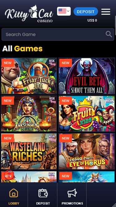 किट्टी कैट कैसीनो एक ऑनलाइन जुआ ब्रांड है जो संयुक्त राज्य अमेरिका,कनाडा और न्यूज़ीलैंड के खिलाड़ियों के लिए है। हमारी यात्रा के समय, यह वेबसाइट बिना किसी जुआ लाइसेंस के संचालित हो रही थी।