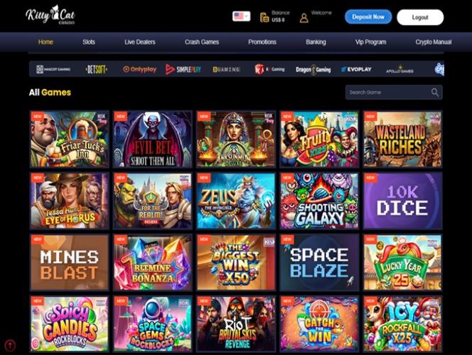 किट्टी कैट कैसीनो ने बेटसॉफ्ट, बीगेमिंग, ड्रैगन गेमिंग, प्रैगमैटिक प्ले और अन्य जैसे सॉफ्टवेयर उत्पादकों के साथ सहयोग करने का निर्णय लिया।