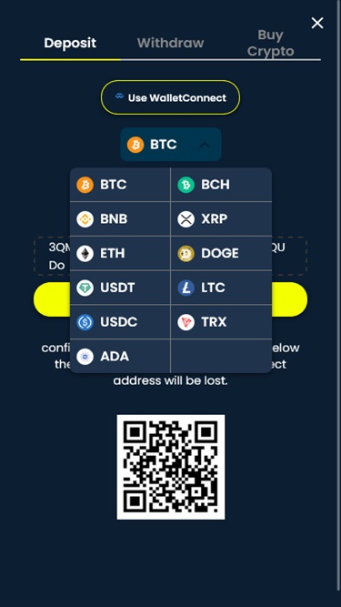 हालाँकि यह एक क्रिप्टो-एक्सक्लूसिव ऑनलाइन कैसीनो है, फिर भी ऑपरेटर खिलाड़ियों को वेबसाइट की दुकान से सीधे क्रिप्टो खरीदने की सुविधा देता है। इससे उन लोगों के लिए क्रिप्टो में प्रवेश करना, जमा करना और निकालना बहुत आसान हो जाता है जिन्हें इस नवीन और आधुनिक बैंकिंग पद्धति का कोई अनुभव नहीं है।