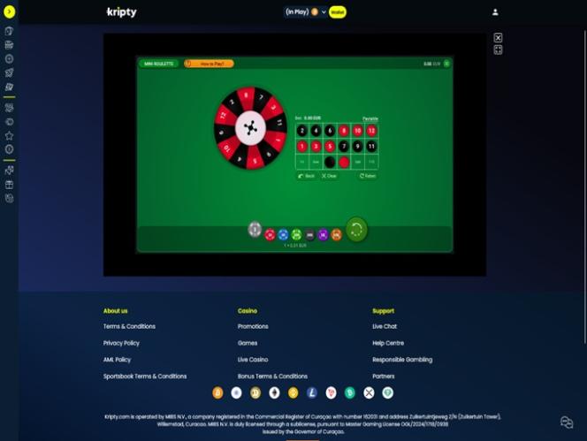 लाइसेंसिंग के संदर्भ में, क्रिप्टी कैसीनो कुराकाओ गेमिंग अथॉरिटी द्वारा विनियमित और लाइसेंस प्राप्त है। यह ब्रांड कनाडा, जर्मनी और फ़िनलैंड के खिलाड़ियों का अपनी वेबसाइट पर स्वागत करता है और उन्हें सभी शानदार खेलों, प्रचारों और गतिविधियों का आनंद लेने के लिए आमंत्रित करता है।