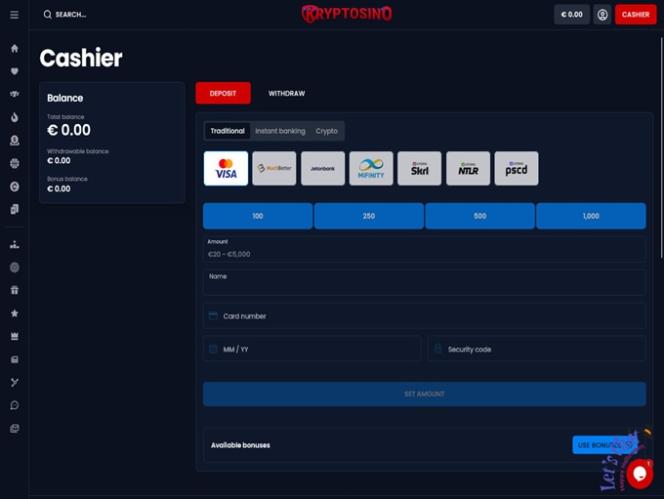 Kryptosino Casino पर बैंकिंग विकल्प