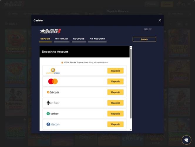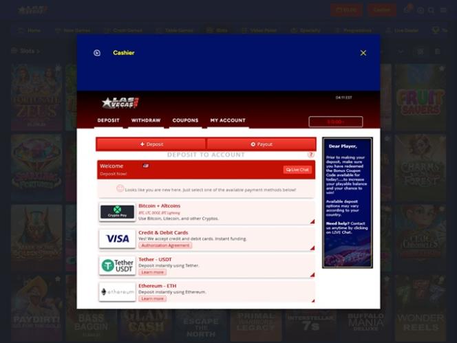 Las Vegas USA Casino पर बैंकिंग विकल्प