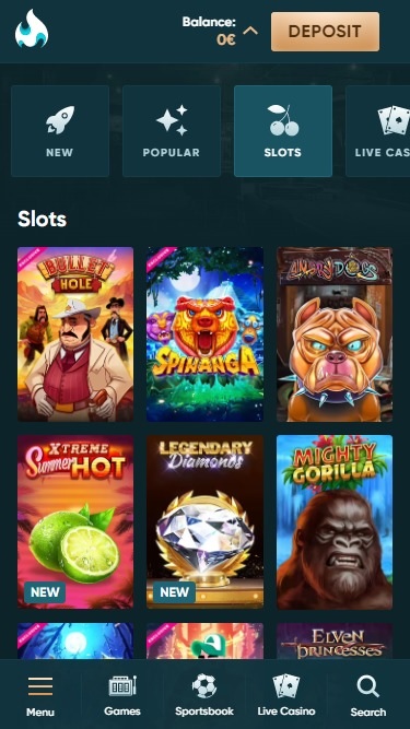 उपलब्ध खेल श्रेणियां हैं: प्रदाता, शीर्ष, नया, लोकप्रिय, स्लॉट, लाइव कैसीनो, टेबल गेम, जैकपॉट और सभी गेम।