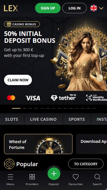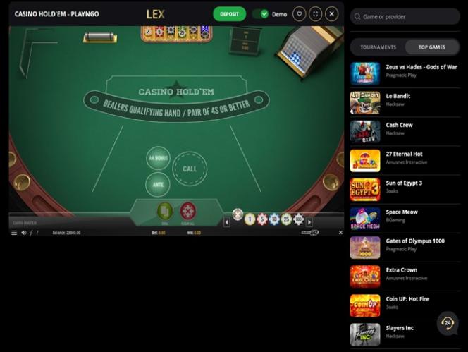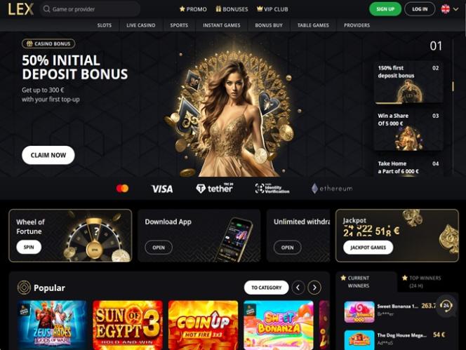 इसके अतिरिक्त, LEX कैसीनो की वेबसाइट के शीर्ष पर एक क्षैतिज मेनू है, जहाँ आप मुख्य जुआ विकल्पों, प्रचारों, बोनस और वीआईपी क्लब तक तुरंत पहुँच सकते हैं। यह मेनू आपको वेबसाइट की भाषा को अंग्रेजी, रूसी, जर्मन, पुर्तगाली, स्पेनिश और फ्रेंच में बदलने की भी सुविधा देता है।