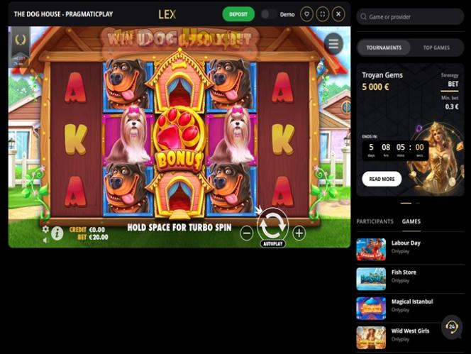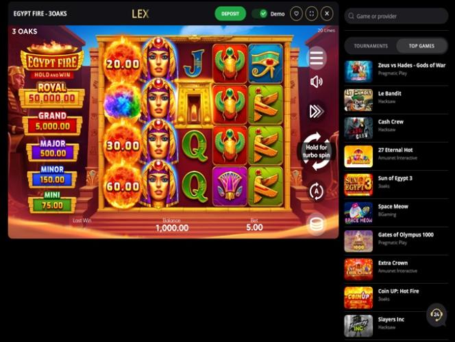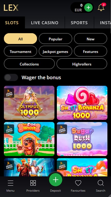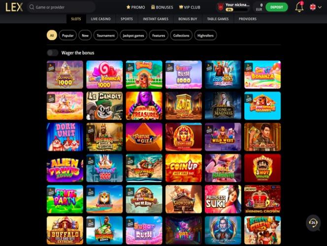 प्लेटफ़ॉर्म पर 120 से ज़्यादा स्टूडियो के साथ, LEX कैसीनो बाज़ार में बड़ी प्रतिस्पर्धा के साथ प्रतिस्पर्धा करता है। इस प्रकार का सॉफ़्टवेयर प्रदाता चयन सबसे अनुभवी खिलाड़ियों को भी संतुष्ट करेगा क्योंकि यहाँ हज़ारों अनूठे शीर्षक उपलब्ध हैं।