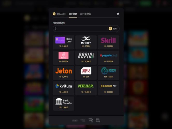 यहाँ, आप कैसीनो के सबसे लोकप्रिय खेलों के साथ-साथ नए जोड़े गए उत्पादों, सॉफ़्टवेयर प्रदाताओं, टूर्नामेंटों और जुए की विभिन्न शैलियों, जैसे लाइव कैसीनो, स्लॉट्स और इंस्टेंट गेम्स, की श्रेणियों को भी देख सकते हैं । और हालाँकि डिज़ाइन न्यूनतम नहीं है, फिर भी खिलाड़ियों को परेशानी महसूस नहीं होगी, जो कि एक चुनौतीपूर्ण उपलब्धि है।