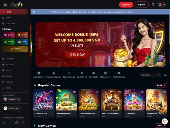 लाइव कैसीनो हाउस Evolution Gaming, Habanero Systems, Play'n GO, Relax Gaming, WM, Pragmatic Play, Nolimit City, Booongo, Fantasma Games, Spadegaming, Evoplay, SA Gaming, Pocket Games Soft, Mancala Gaming, SmartSoft Gaming, Eurasian Gaming, Blueprint Gaming, Reel Time Gaming, BF Games, Wild Streak Gaming, Hacksaw Gaming, Gamzix, Slotmill, FastSpin, Lucksome Gaming, Dragoon Soft, Aviatrix, Dream Gaming, 3 Oaks Gaming, Amigo Gaming, AE Sexy, Spribe, Jili and Reel Kingdom द्वारा संचालित है और कैसीनो के गेम वेब-आधारित ब्राउज़र के माध्यम से उपलब्ध कराए जाते हैं, जिससे खिलाड़ियों को बोझिल सॉफ़्टवेयर डाउनलोड करने की आवश्यकता नहीं होती। साइट का डिज़ाइन मोबाइल-प्रमुख है, लेकिन आप बिना किसी समस्या के अपने डेस्कटॉप या लैपटॉप पर भी खेल सकते हैं।