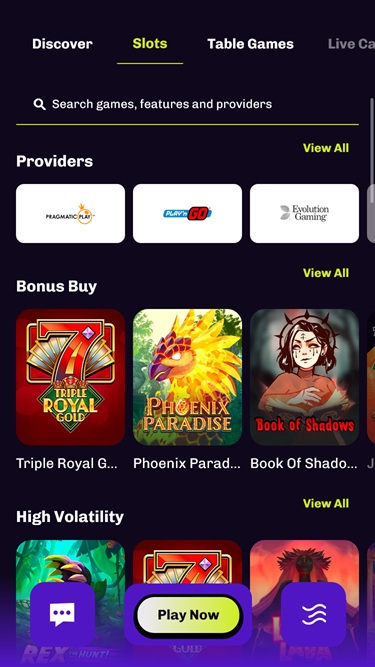 शुरुआत से ही, खिलाड़ियों का स्वागत रोमांचक कैसीनो गेम्स की एक विशाल लाइब्रेरी से होगा। अगर आप ऐसे खिलाड़ी हैं जो हर बार लॉग इन करते समय नए गेम्स की खोज और खोज करना पसंद करते हैं, तो आपको सभी उपलब्ध विकल्पों को ब्राउज़ करने में बहुत मज़ा आएगा, जिनमें ऑनलाइन स्लॉट, लाइव डीलर , टेबल गेम्स और क्रैश गेम्स शामिल हैं।