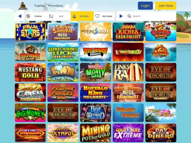 संपूर्ण जुआ उत्पाद देखने के लिए, वेबसाइट के शीर्ष पर क्षैतिज मेनू का उपयोग करें। वहाँ से आप गेम कैटलॉग, प्रचार सामग्री और ट्रॉफी सिस्टम तक आसानी से पहुँच सकते हैं।