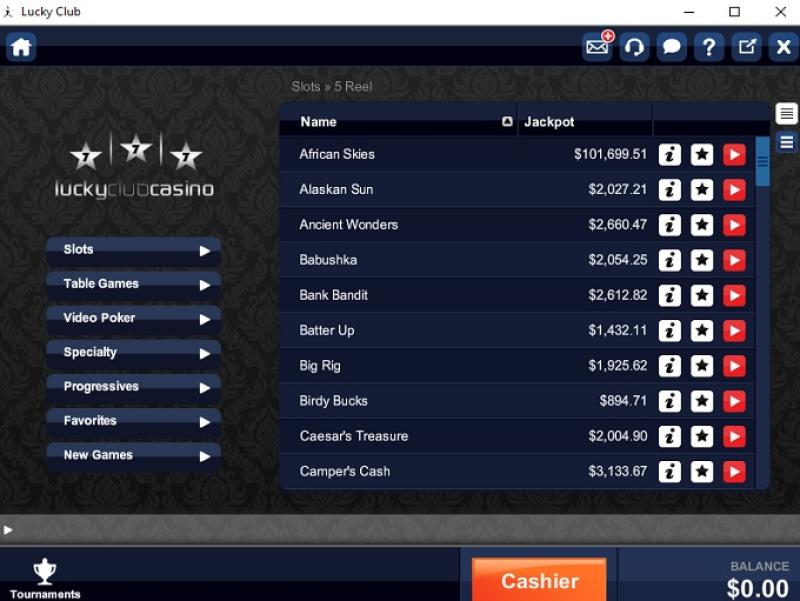 Lucky Club Casino NuWorks द्वारा संचालित है, जो अपने वेब-आधारित और डाउनलोड करने योग्य कैसीनो क्लाइंट के माध्यम से दर्जनों गेम प्रदान करता है।अन्य खेल