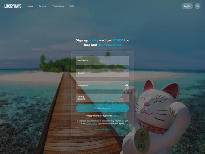 दुर्भाग्य से, लकी डेज़ नए खिलाड़ियों और उनके पहले चार जमा राशियों के लिए एक सीमित प्रोमो सेक्शन प्रदान करता है। यह शानदार ऑफर तीस दिनों की अवधि के लिए वैध है। ध्यान रखें कि कुछ गेम इस प्रमोशन से बाहर हैं।