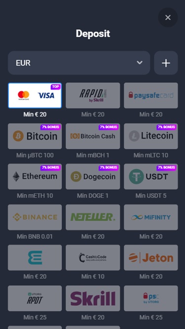 कैसीनो कैशियर भुगतान विधियों का एक अद्भुत चयन प्रदान करता है, जिसमें डेबिट और क्रेडिट कार्ड, ई-वॉलेट, क्रिप्टो वॉलेट, सीधे धन हस्तांतरण और अन्य बैंकिंग विकल्प शामिल हैं जिनमें से खिलाड़ी चुन सकते हैं। ध्यान दें कि उपलब्ध विकल्प देश पर निर्भर करते हैं, इसलिए सुनिश्चित करें कि आपके क्षेत्राधिकार में ऑनलाइन गेमिंग के लिए पसंदीदा विकल्प उपलब्ध हो।