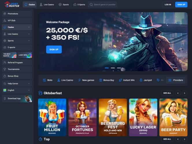 लकी हंटर कैसीनो एक अनुभवी कंपनी के स्वामित्व वाला एक ऑनलाइन कैसीनो है जो कुराकाओ के कानूनों के तहत निगमित है और एंटिलीपोन द्वारा लाइसेंस प्राप्त और विनियमित है। यह संचालक मुख्य रूप से ऑस्ट्रिया, स्विट्जरलैंड, आयरलैंड और न्यूजीलैंड के खिलाड़ियों पर केंद्रित है, और कैसीनो की वेबसाइट जर्मन, अंग्रेजी, फ्रेंच, इतालवी और नॉर्वेजियन भाषाओं में स्थानीयकृत है। पहली नज़र में, यह आकर्षक और आकर्षक लगता है, और हम इसे देखने के लिए काफी उत्साहित थे।