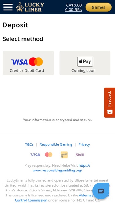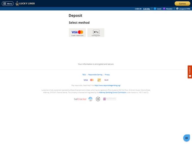 लकी लाइनर कैसीनो को एल्डर्नी जुआ नियंत्रण आयोग द्वारा लाइसेंस और विनियमित किया जाता है। स्वीकृत देशों के संदर्भ में, यह ब्रांड विशेष रूप से कनाडा के खिलाड़ियों का स्वागत करता है।