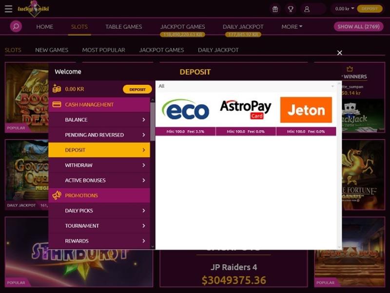 लकी निकी कैसीनो की बैंकिंग प्रणाली मज़बूत है क्योंकि उनके पास जमा और निकासी के कई विकल्प हैं (वायर्ड, एंट्रोपे, मास्ट्रो, मास्टरकार्ड, स्क्रिल, नेटेलर, वीज़ा और इकोपेज़)। कैसीनो उसी दिन जीत की राशि का भुगतान कर देता है, जबकि अन्य तरीकों से भुगतान पूरा होने में 2 से 7 कार्यदिवस लगते हैं। हालाँकि यह अब तक का सबसे तेज़ भुगतान नहीं है, फिर भी यह काफी अच्छा है। ध्यान दें कि जीत की राशि पर मासिक निकासी सीमा $10,000 और प्रति लेनदेन $5,000 है।