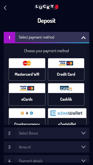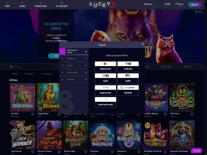 लकी8 कैसीनो Net Entertainment, BetSoft, Amatic Industries, Big Time Gaming, Evolution Gaming, Novomatic, Oryx, Play'n GO, playson, Quickspin, Relax Gaming, Thunderkick, Yggdrasil, Pragmatic Play, Nolimit City, Red Tiger Gaming, Booongo, Spinomenal, Felix Gaming, Fantasma Games, Spin Games, BGAMING, Electric Elephant Games, Pocket Games Soft, Bulletproof Games, Gluck Games, Golden Rock Studios, Swintt, Blue Guru Games, bluberi, GamesOS, Greentube, Gamomat, Bally Wulff, Reflex Gaming, Storm Gaming Technology, Wild Streak Gaming, Jade Rabbit Gaming, STHLM Gaming, 4ThePlayer, AvatarUX, Gamevy, ReelPlay, Japan Technicals Games, BB Games, Boomerang Studios, Hacksaw Gaming, Max Win Gaming, Bang Bang Games, Gamzix, Arcadem, Peter And Sons, Aviatrix, 3 Oaks Gaming, Print Studios, Gaming Corps, Four Leaf Gaming, Atomic Slot Lab, Reel Kingdom and Givme Games द्वारा संचालित है और कैसीनो के गेम एक वेब-आधारित प्लेटफ़ॉर्म के माध्यम से उपलब्ध कराए जाते हैं, जिसे आप अपने कंप्यूटर या मोबाइल डिवाइस पर वेब ब्राउज़र के माध्यम से एक्सेस कर सकते हैं। साइट देखने में अच्छी है, इस्तेमाल में आसान है, और मैंने कुछ ही मिनटों में पंजीकरण कर लिया और खेलना शुरू कर दिया।अन्य खेल