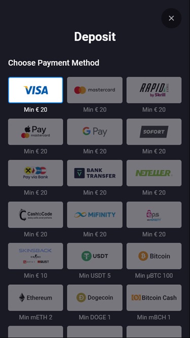 जैसा कि बताया गया है, वेबपेज बैंकिंग विकल्पों सहित प्रदान की जाने वाली सेवाओं की विस्तृत जानकारी प्रदान करता है। भुगतान अनुभाग में आपके गेमिंग क्षेत्राधिकार में उपयोग की जा सकने वाली सभी उपलब्ध जमा और निकासी विधियों की सूची दी गई है, जिसमें कमीशन, प्रोसेसिंग समय और न्यूनतम सीमा का पूरा विवरण शामिल है। डेबिट और क्रेडिट कार्ड और सीधे बैंक हस्तांतरण से लेकर Skrill और Neteller जैसे व्यापक रूप से उपयोग किए जाने वाले ई-वॉलेट, साथ ही बिटकॉइन, बिटकॉइन कैश, एथेरियम, डॉगकॉइन, रिपल, टीथर जैसे लोकप्रिय क्रिप्टोकरेंसी विकल्पों तक, इस ब्रांड ने आपके खाते में धनराशि जमा करना और असली पैसे निकालना आसान बना दिया है।